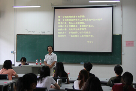 9月22日上午,为使我院新一届研究生能够尽快适应研究生的生活与学习,学院邀请了我院王可大教授在雁山“纯道楼”2-106教室为美术学院2014级全体研究生做了题为“艺术•人生——漫谈研究生学习”的学术讲座,这也是我院“九讲九展”学术系列讲座的第六讲,讲座由学院党委副书记禤推鸰老师主持。
