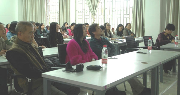 11月6日下午,北京工业大学李惠东教授在雁山校区純道楼2栋106多媒体教室,举行了以“对中国传统雕塑的理解和转换”为主题的讲座。我院院长何平静、桂林理工大学艺术学院副院长吴筱荣、我院实验艺术系主任孔庆坚和相关专业老师,以及我院2013、2012年级插画专业本科生、全体研究生共计150余人参加聆听讲座。本次讲座由我院陆丽娟副院长主持。