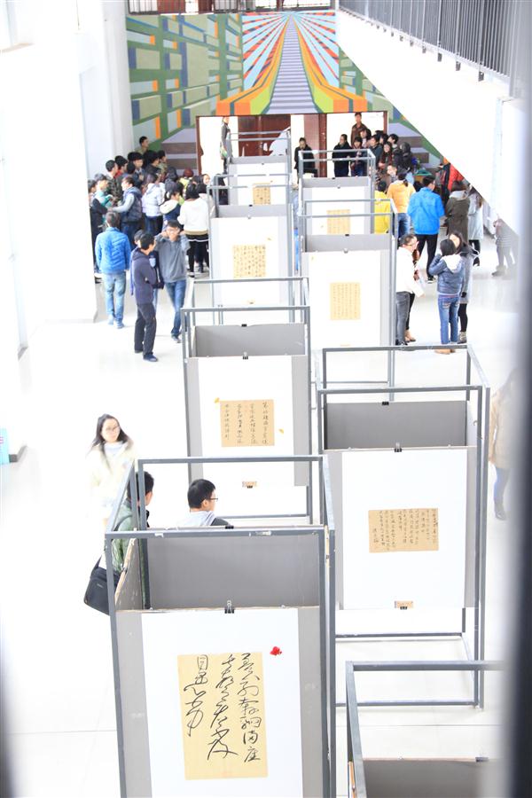 本次习作展是2014级绘画专业国画方向书法基础课程的总结,同学们在马一博老师的指导下,认真钻研书法知识,展现了该专业方向同学们良好的精神风貌,促进了同学们之间的相互交流。(作者:潘冬梅)