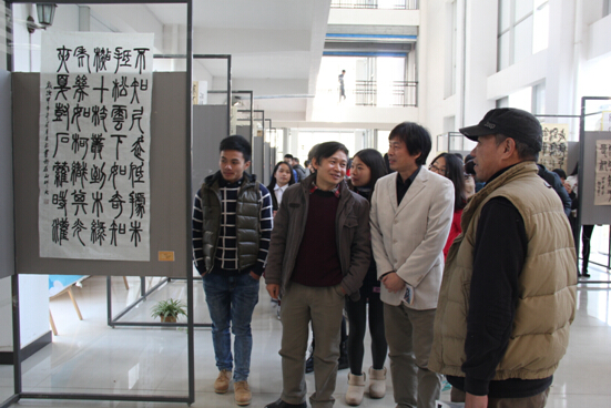 为了展现2014级书法专业篆书学习成果,12月18日上午,我院2014书法专业的篆书习作展在美院侧门举行。院长何平静教授、副院长陈兵教授、副院长陆丽娟副教授、美术史论与公共艺术系主任唐长兴副教授、老师代表及学生共计100余人参加了开幕式。