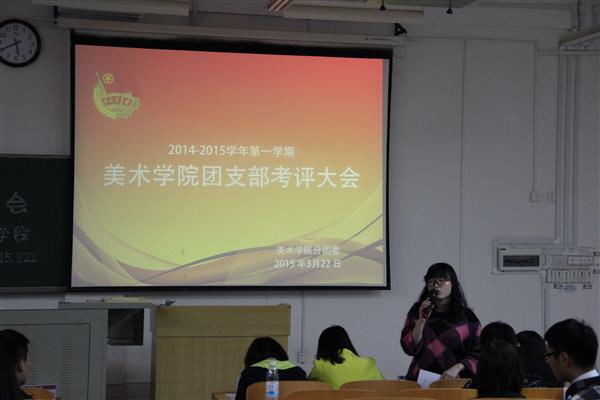 为进一步加强分团委对各团支部规范化建设的监督与考核,科学、全面的评价各团支部的工作,挖掘优秀基层团组织,加强团组织的创造力和凝聚力,推进我院团组织的发展与建设,3月22日下午我院分团委在四区204教室召开美术学院2014—2015学年第一学期团支部考评大会。出席本次会议的领导嘉宾有学院党委副书记禤推鸰老师、分团委书记李敏老师、2014级辅导员张坤丽老师、校团委以及各学院学生会代表。