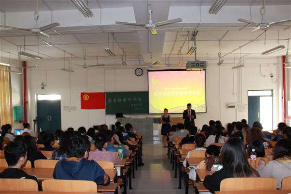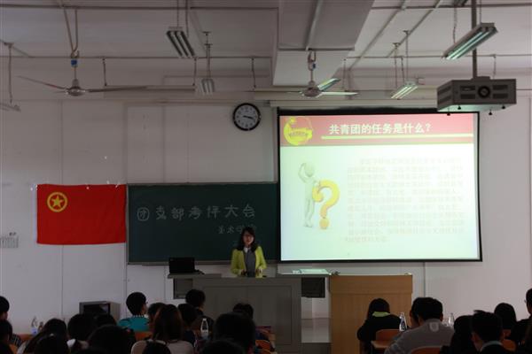 与会师生一起合唱团歌拉开了本次团支部考评大会的序幕。接着,由李敏老师为大家作团情知识介绍。然后,我院各团支部依次对上一学期开展工作情况、所取得的成绩以及本学期工作计划进行展示,并回答在场嘉宾的提问。各团支部展示结束后,由校团委代表对本次大会进行点评。他首先对我院各团支部工作表示肯定,并对我院在各团支部之间加强交流合作、丰富展示形式、增加新媒体技术应用等方面提出宝贵意见。