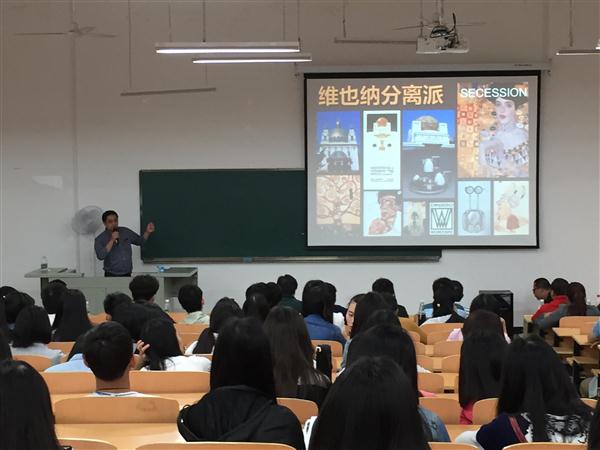4月15日上午,维也纳当代亚洲艺术交流中心主任罗光耀受邀在我院纯道楼阶梯教室面向全院师生举办了题为《维也纳分离派》的讲座。院长何平静老师、杨永葳老师、李嘉林老师、王军老师、黄春芸老师,以及众多我院学子前来聆听讲座。