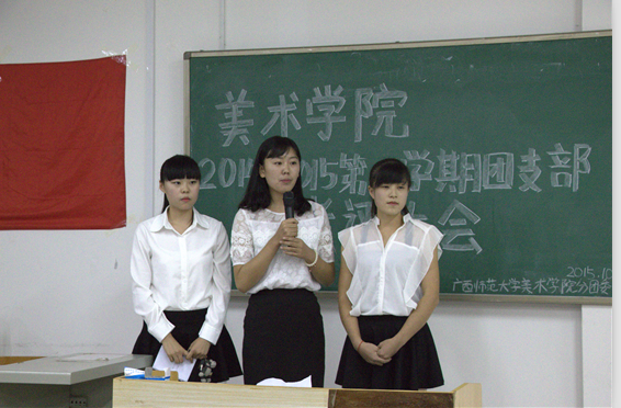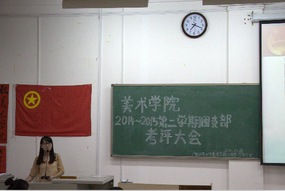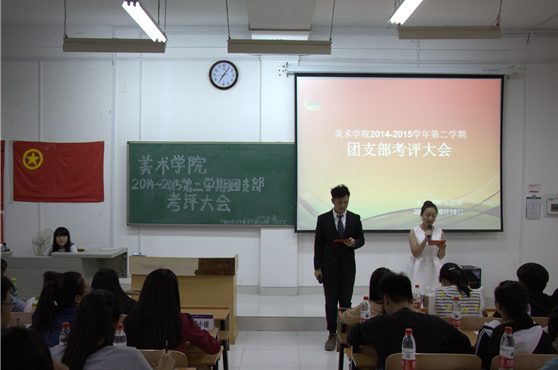 为推进美术学院团组织的发展与建设,进一步加强分团委对各团支部规范化建设工作的监督考核,科学、全面的评价各团支部的工作,发掘优秀基层团组织,加强团组织的创造力和凝聚力,10月18日,美术学院在文四区104教室开展了2014-2015学年第二学期团支部考评大会。学院分团委书记李敏老师、14级辅导员张坤丽老师、15级辅导员温怀宇老师出席考评大会,各兄弟学院的代表到场观看活动。来自研究生和本科生的各年级、各专业的团支书们对8个团支部风采作精彩展示。