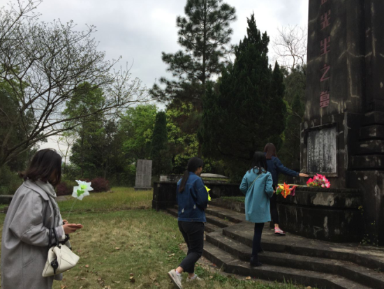 随后,参加活动的全体党员和入党积极分子怀着无比崇敬的心情向马君武校长、马保之先生的陵墓献上了小花,并先后在马君武校长、马保之先生父子墓前三鞠躬,表达对他们的尊敬与哀思。