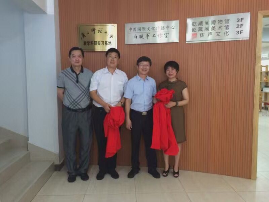 市委宣传部副部长黄立平、市社科联主席隆斌、美术学院书记白先柱和韦奕宏馆长一同为基地挂牌揭幕
