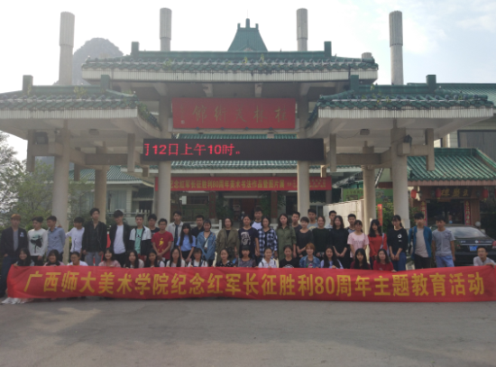 为纪念红军长征胜利八十周年,10月12日上午,由市委宣传部、市文化新闻出版广电局、空军空降兵学院主办,桂林美术馆、桂林画院、桂林市美术家协会、桂林市书法家协会承办的“丹青赞盛世,翰墨忆长征--纪念长征胜利80周年美术书法暨图片展”在桂林美术馆拉开帷幕。美术学院2015级绘画专业50余名师生代表前往桂林市美术馆参加展览。