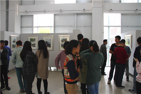 2016年11月17日上午,美术学院2015级水彩班在美术学院走廊展厅举办富川秀水写生汇报展。学院领导、指导老师杨济安,以及2015级水彩班全体同学参加了开幕式。展览中,同学们认真的聆听老师的点评、指导,让同学们拓展了视野、增长了见识。