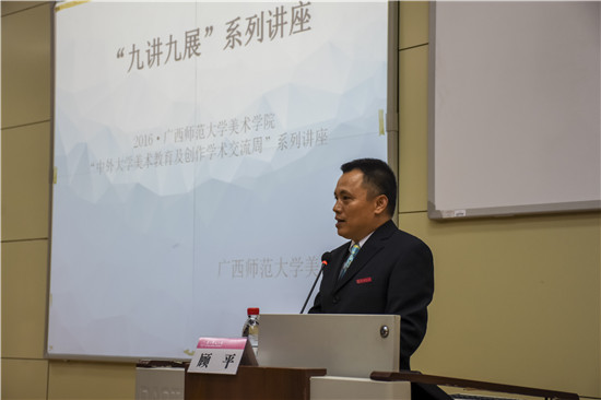 11月21日下午,我院举行“艺术专业科研课题申报与学术论文写作”讲座。广西师范大学美术学院教师代表、在校研究生以及本科生代表一同聆听了顾平教授“科研课题的申报与学术论文的撰写”和翟勇教授“国家艺术社科基金项目申报技巧”两场精彩的讲座。讲座由美术学院副院长陆丽娟教授主持讲座。