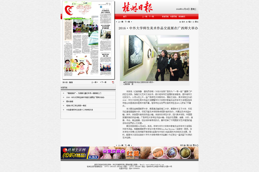 《桂林日报》报道我院等主办的”2016·中外大学师生美术作品交流展暨中外大学美术教育及创作学术交流周”