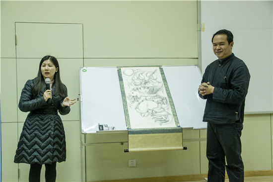 离披衮•玛高老师为我们深入浅出的讲解了泰国艺术发展史,讲述了木雕、贴金、帛画、漆艺等多种艺术表现形式。同时,离披衮•玛高老师还介绍了中国传统艺术对泰国艺术的深刻影响,让同学们深刻的感受到了中泰文化的融合发展,从而更深入的体会到了中泰两国文化同呼吸、共命运的深厚友谊。