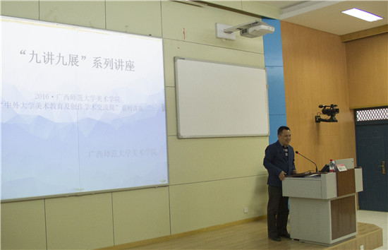 11月23日下午,泰国著名艺术家、泰北皇家理工大学清迈校区艺术与建筑学院助理教授Lipikorn Makaew(离披衮•玛高)应我校邀请,在雁山校区文一区1-208教室为我院师生进行“泰国艺术发展方向”的讲座。本次讲座由美术学院院长陈兵教授主持。泰国泰北皇家理工大学、泰国宋卡王子大学、印尼马拉拿塔基督教大学等外国专家,学院教师代表,2013级学生等共计200人参加讲座。