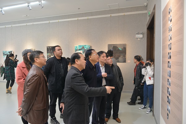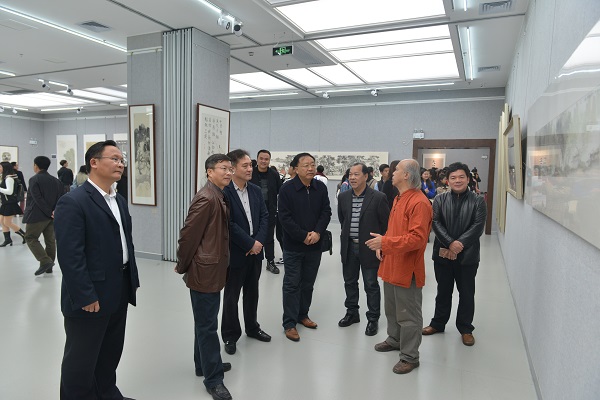桂林市人大副主任赵德明、桂林市政协副主席郑毅、广西师大副校长白晓军参观画展