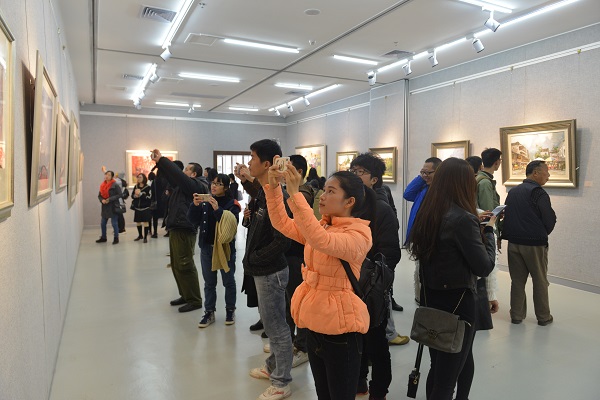 泛漓江流域自然人文资源深度开发与艺术表现研究团队是广西人文社会科学发展研究中心重点打造的特色团结之一,团队主要成员15人在首席专家、广西师范大学美术学院教授肖舜之、主要专家白晓军教授的带领下,立足泛漓江流域底蕴深厚的人文资源和特色鲜明的自然资源,发挥学科专业优势和地域、文化优势,历时四年进行深度开发、呈现,先后组织大型艺术采风3次、综合艺术沙龙5次、专家访谈6次、艺术研讨30余次,取得了系列成果。其中,汇编画册与文集各一部,举办综合汇报展览1次,还多次在全国美术作品展、全国青年美术展、中国油画展等重大展览中拔得头筹,彰显了“人文强桂”的价值追求,为泛漓江流域“有文化的发展”、“有灵魂的发展”特别是桂林历史文化旅游名城建设贡献了一笔可贵的艺术财富。这次作品展以“自然 人文 艺术 表现”为主题,共展出国画、水彩画和油画作品共150多幅,作品融思想性、艺术性、观赏性于一体,生动展现了泛漓江流域的自然美、人文美,为当代中国“有文化的发展”、“有灵魂的发展”贡献了一笔可贵的艺术成果。