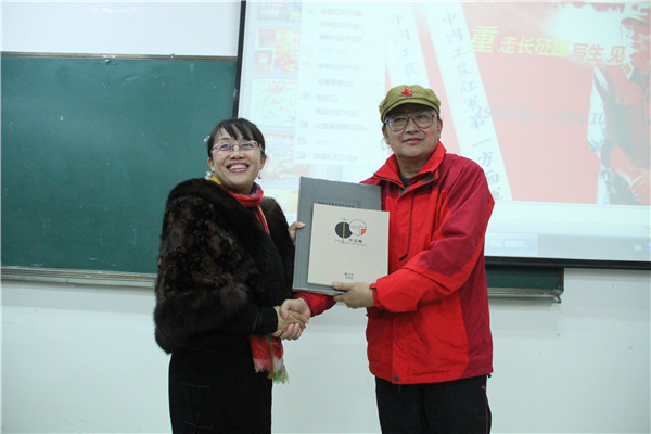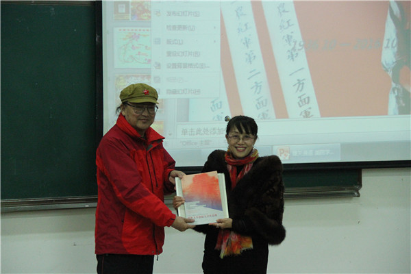 讲座上,刘增宪副教授用一幅幅画作生动形象地向大家讲述了其重走长征路中的写生与创作故事,再现了“长征会师地”、“望月亭——十送红军”、“鸡鸣三省”等红军长征的历史。