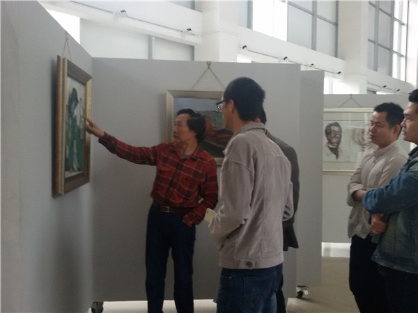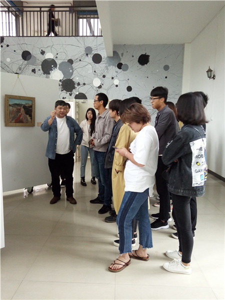 展览期间,学院专业老师对其作品进行了点评,就油画绘画的创作方法与经验与同学们进行了探讨,引导大家互相交流,共同学习提高。
