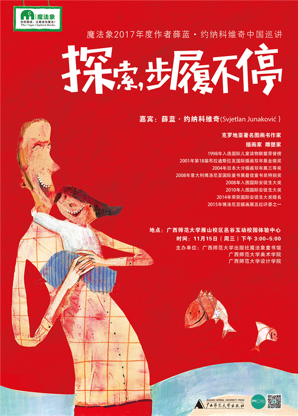 2017年克罗地亚著名图画作家、插画家、雕塑家——薛蓝·约纳科维奇分别在中国杭州、济南、西安、武汉、长沙、桂林、上海七个城市进行巡讲,其中桂林站在我校举行