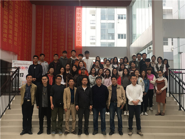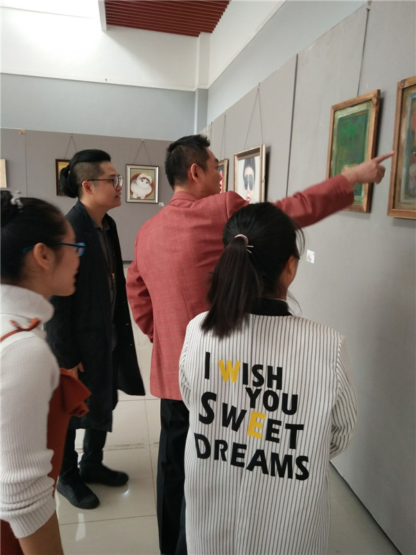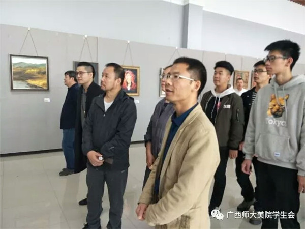 展览开幕当天,指导老师杨灿、温怀宇,学院党委书记白先柱,学院党委副书记兼2015美术学本科班辅导员陈祖权、油画系主任胡建强、美术教育系主任黄启波,以及西安美术学院继续教育学院油画教授耿建义等出席展览,并与同学互动交流,给予指导。(美术学院)九讲九展