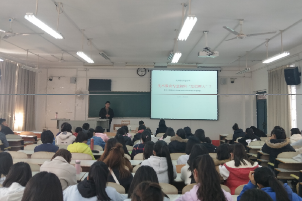 在与同学们进一步现场互动之后,黄启波副教授指出,美术学专业要与时俱进,要文化自信,主动适应时代要求,把“立德树人”贯穿人才培养的始终,作为“魂”融入人才培养方案制订、实施及人才质量评价全过程。同学们只要以“立德树人”为成长指针,坚持理论与实践相结合,通过多种方式整体系统的思考探索认识自然运行规律,按自然规律学习生活,按自然规律组织教学,将来一定会成为新时代优秀的美术教师。