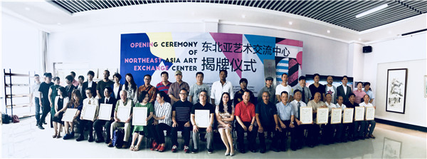 最后,王俊教授、白晓军教授共同为韩国新罗大学徐银京、韩瑞大学金镇宇、日本崇城大学中村 贤次等12名海外教授颁发东北亚艺术交流中心研究员聘书。