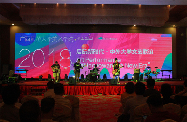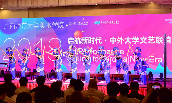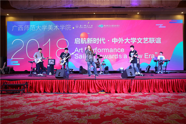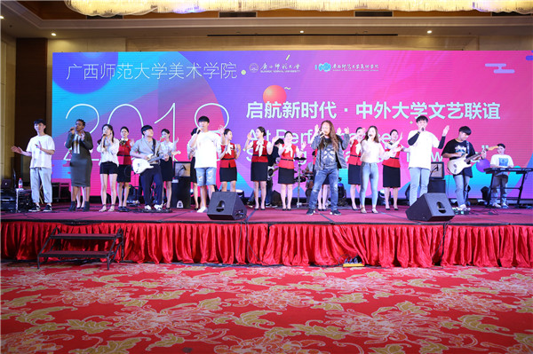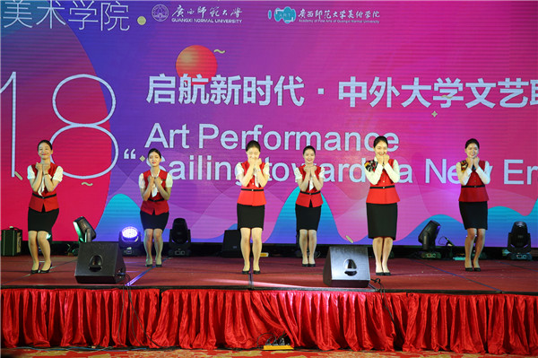 接着,广西师范大学美术学院、音乐学院、国际文化教育学院与韩国韩瑞大学的师生献上精彩的“启航新时代·中外大学文艺联谊”汇演。师生们热情洋溢,载歌载舞,既表达了广西壮族自治区成立60周年、广西师范大学美术学院办学30周年的喜悦,又展现出了青年一代艺术人敢于追梦、善于圆梦的良好风貌,续写着中外高校师生深厚的友谊。