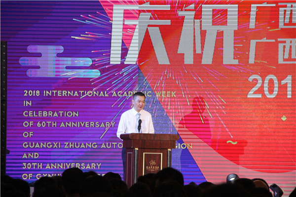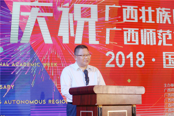 邓军书记讲话并宣布庆祝广西壮族自治区成立60周年和广西师范大学美术学院办学30周年2018·国际学术周开幕