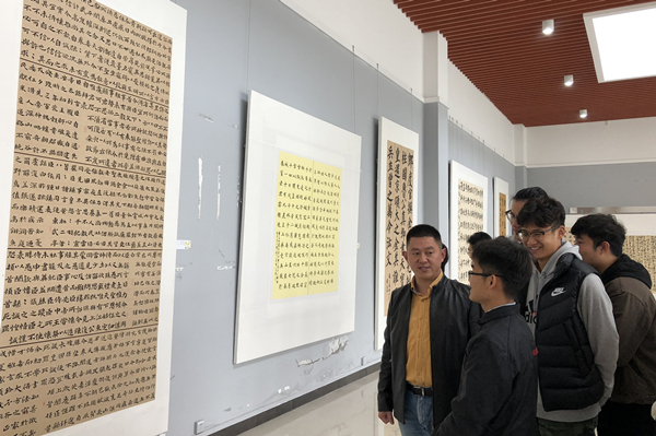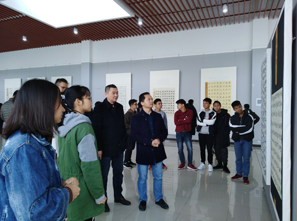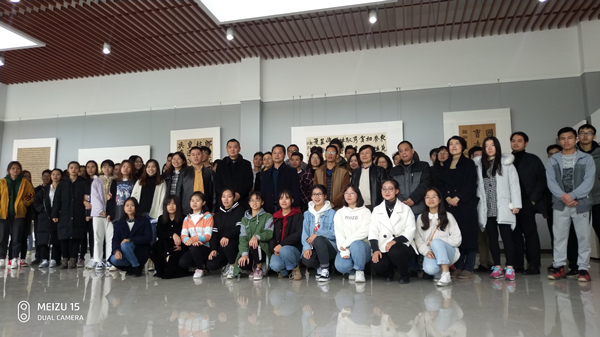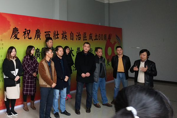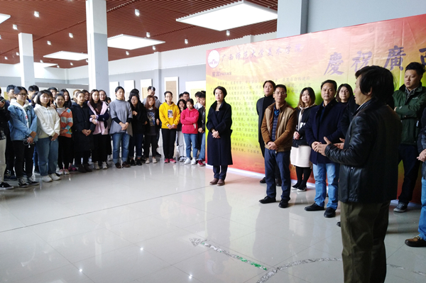 11月19日上午,2017级书法学楷书基础书法作品展在纯道楼美术馆开幕,以墨韵之美庆祝改革开放40周年和广西壮族自治区成立60周年。学院部分领导、教师及学生近200人参加了开幕式。