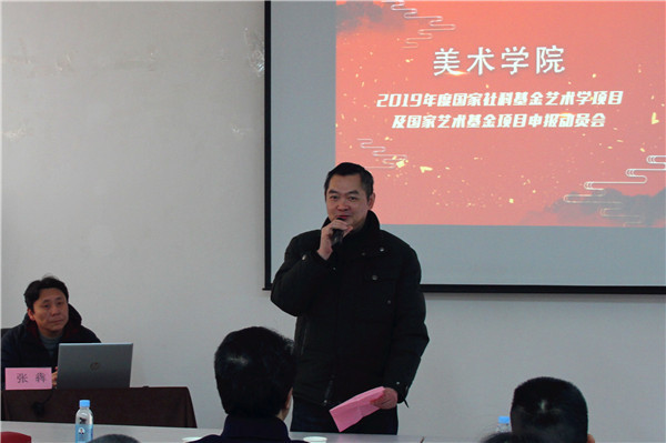 12月17日上午,由我院主办的国家社科基金艺术学项目申报培训动员暨专题报告会在雁山校区美术学院3-A208会议室成功举办。党委书记白先柱,副院长徐芳、黄海儒,部分青年教师及学生代表近100人参加了报告会。会议由副院长陆丽娟老师主持。
