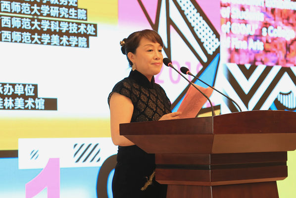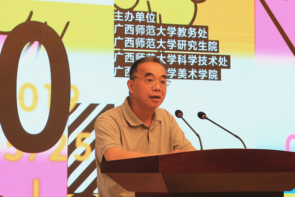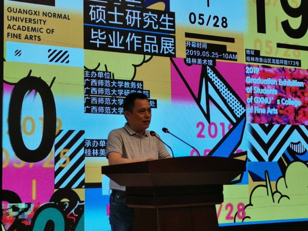 桂林市美术家协会主席张贤致辞。他指出,本次展览是一个高水平的毕业生作品展,作品风格鲜明,具有较强的创新性,呈现了和而不同的新气象。
