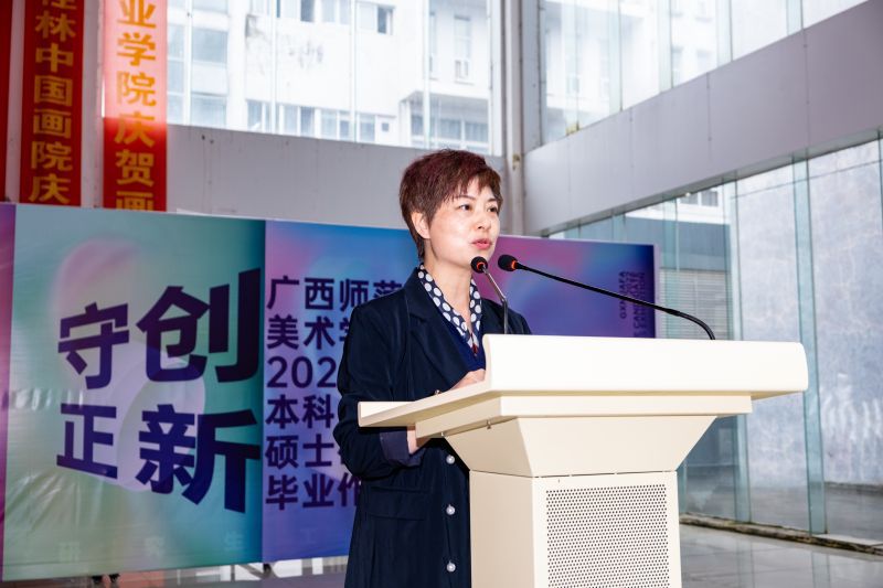 5月23日上午,美术学院在雁山纯道楼展厅举办“守正创新”——2022届本科绘画专业毕业作品展开幕式。学院党委书记向先孟、科技处处长宋树祥、校学工部(处)副部长蒋丽琳、科技处副处长黄海儒、设计学院副院长刘世军、设计学院副院长谢青、学院党委副书记周晓霞、学院副院长刘宪标及学院师生代表出席开幕式,学院副院长(主持行政工作)陆丽娟主持开幕式。