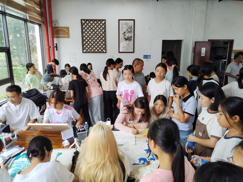 在绘画专业技法课环节,学院教师为当地群众和书画爱好者带来了一场干货满满的艺术盛宴。从构图技巧到色彩运用,从基础笔法到创作构思,深入浅出地讲解与示范,让艺术之花在漠川乡绚丽绽放。随后,学院师生与当地群众携手挥毫,以画笔为媒介,将漠川乡的青山绿水、古村新貌定格在画卷之上,一幅幅作品生动展现乡村振兴的蓬勃生机与美好前景。