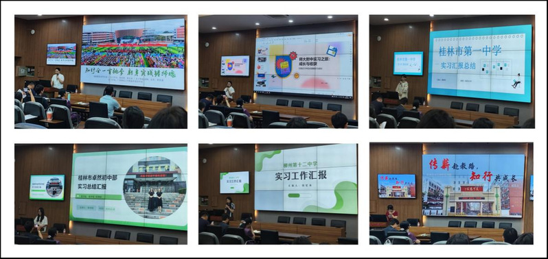 六位实习生代表依次通过图片、视频等形式,展示了各自小组教学实习和班主任实习工作的特色和亮点,并对教育实习过程中的不足进行了反思。美术教育系主要负责人对实习小组的汇报进行了点评。