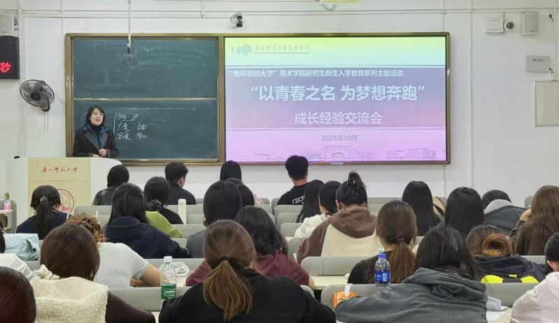 为深入贯彻党的二十届四中全会精神,自觉践行新时代赋予高等教育的文化使命与美育担当,学院积极响应党中央关于推进国家治理体系和治理能力现代化、繁荣发展文化事业和文化产业的战略部署,于10月29日在文一区302教室举办艺生艺学之“以青春之名,为梦想奔跑”研究生成长经验交流会。会议聚焦全会“建设文化强国、教育强国”要求,旨在将发展先进文化、践行核心价值观融入人才培养全过程,引导研究生将个人理想融入民族复兴伟业。研究生辅导员主持会议,学院研究生参加会议。
