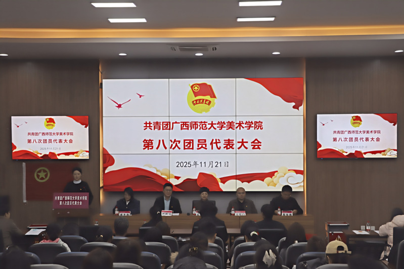 11月21日,共青团广西师范大学美术学院第八次代表大会在雁山校区纯道楼001报告厅隆重召开。学院行政主要负责人,校团委负责人、学院分管学生工作的党委负责人、学院团委负责人等出席,兄弟学院团委代表应邀参会,来自全院各团支部的136名正式代表参会。