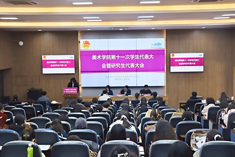 此次大会是全院青年学子政治生活中的一件大事,更是一次凝聚共识、凝聚力量、凝聚希望的青春盛会。它不仅全面总结了学院过往学生工作的丰硕成果,更清晰指明了未来的发展方向,进一步点燃了全体美院青年的奋斗激情。站在新的起点上,美院学子将秉持“弘道树人 精艺尚美”的院训精神,以笔墨为翼、以理想为灯,在艺术创作中精进不休,在服务社会中担当作为,为学院高质量发展、美育事业繁荣进步、壮美广西建设,书写无愧于时代、无愧于青春的精彩艺术华章!