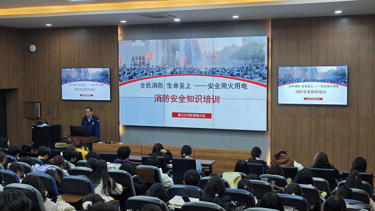 本次培训特别邀请雁山消防救援大队何有双参谋担任主讲教官。何有双以近年来高校典型火灾案例为切入点,从火灾成因、预防重点、法律责任三个维度展开系统解析,重点讲解火场逃生自救技巧、火警报警规范流程、人员疏散组织要点及初期火灾扑救方法。授课内容兼具理论深度与实操指导性,有效提升了参训师生对消防安全知识的认知度与应用能力。
