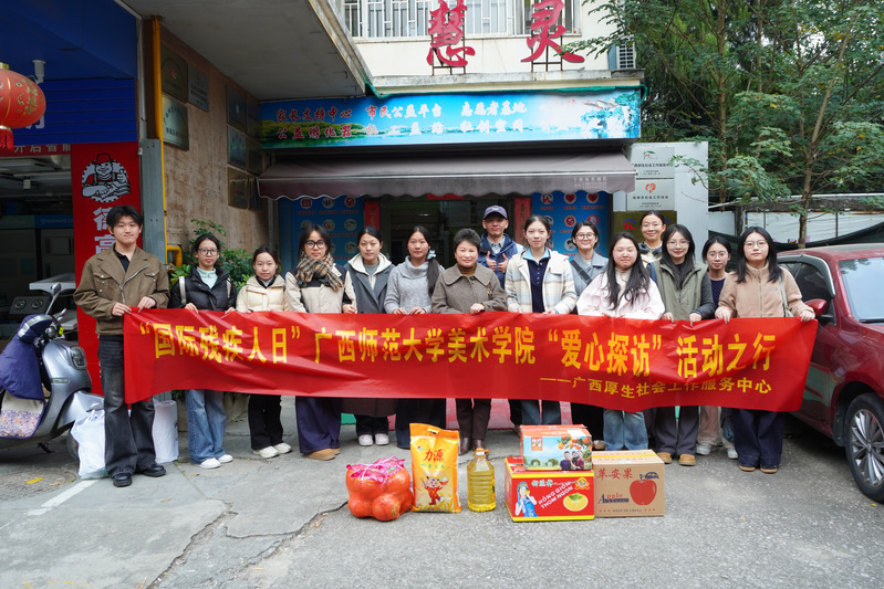 在第34个“国际残疾人日”来临之际,广西师范大学美术学院“群星闪耀・红色青言宣讲团”联合小雨滴义教社、研究生志愿者团队,走进广西厚生社会工作服务中心,以“爱心探访”公益活动为载体,凭借专业优势传递温暖,以美育浸润点亮特殊群体生活。