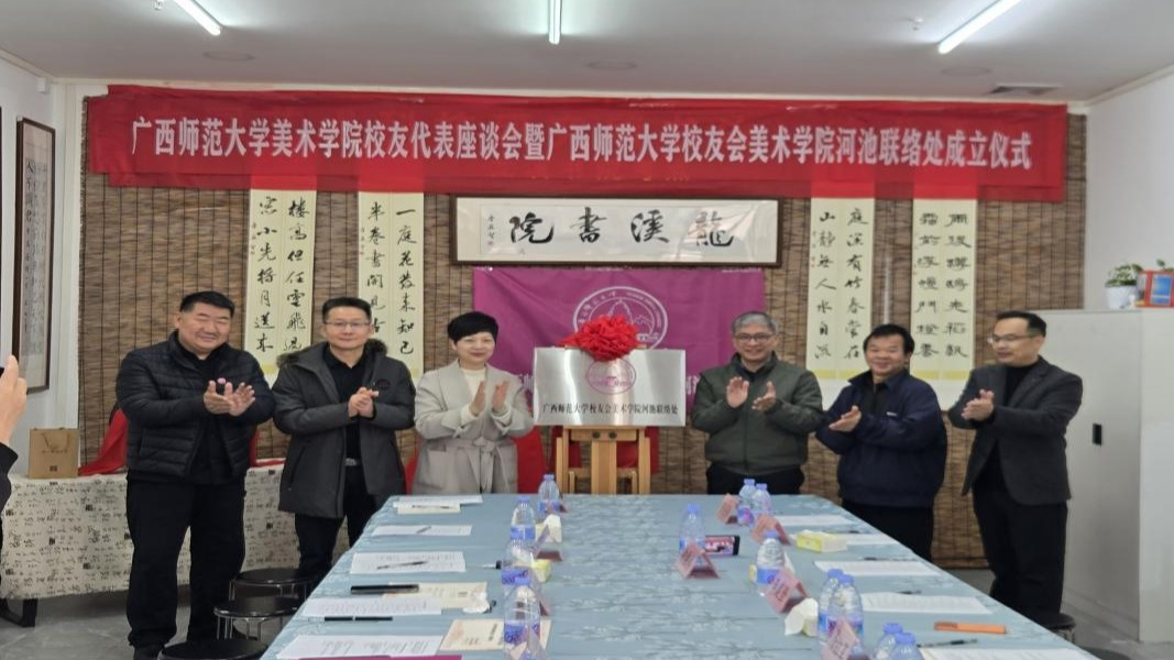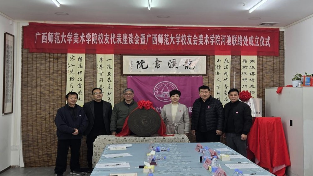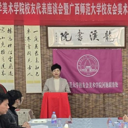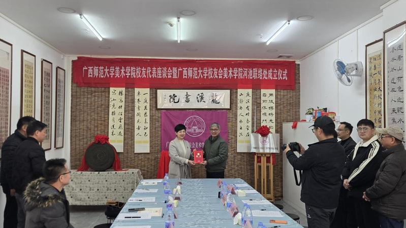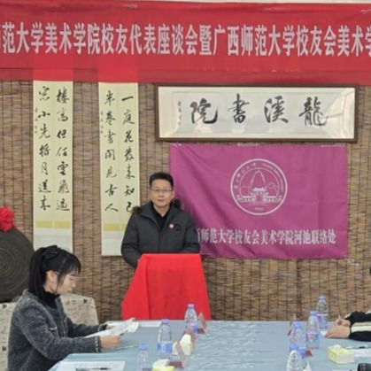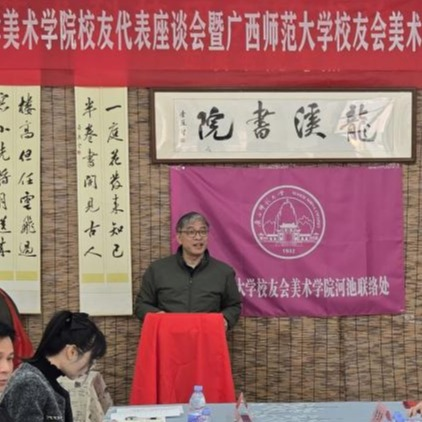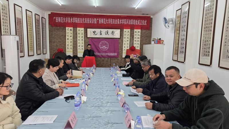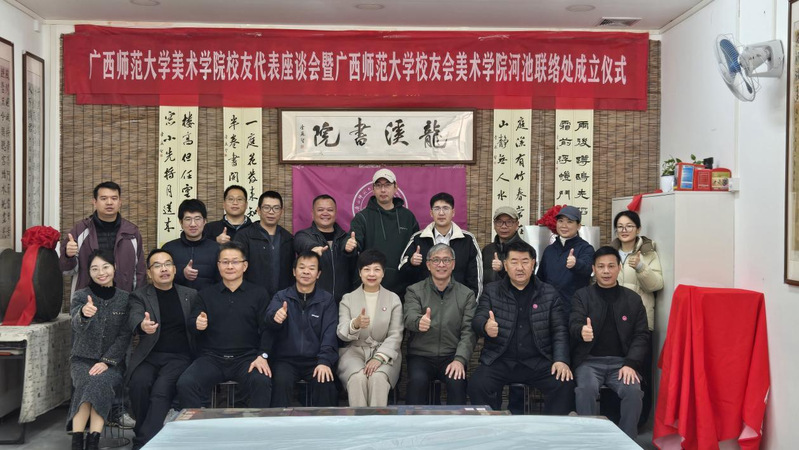 1月10日上午,广西师范大学美术学院校友代表座谈会暨广西师范大学校友会美术学院河池联络处成立仪式在河池市宜州区龙溪书院(万福城校区)顺利举行。广西师范大学校友工作办公室负责人、美术学院行政主要负责人、广西师范大学河池学院校友会理事刘璐瑶以及美术学院20余名校友代表齐聚一堂,共同见证这一凝聚校友情谊、赋能校地发展的重要时刻。