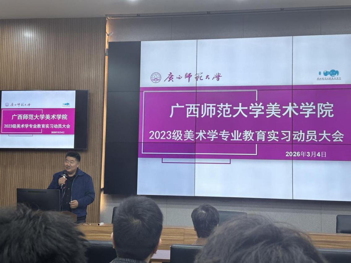 为扎实推进师范类专业人才培养工作,明确教育实习目标任务,强化实习纪律与师德师风建设,近日,美术学院在纯道楼报告厅召开2023级美术学专业教育实习动员大会。学院党政领导班子成员、系部主要负责人、年级辅导员、实习指导教师及全体2023级美术学专业(师范类)学生参加本次大会。
