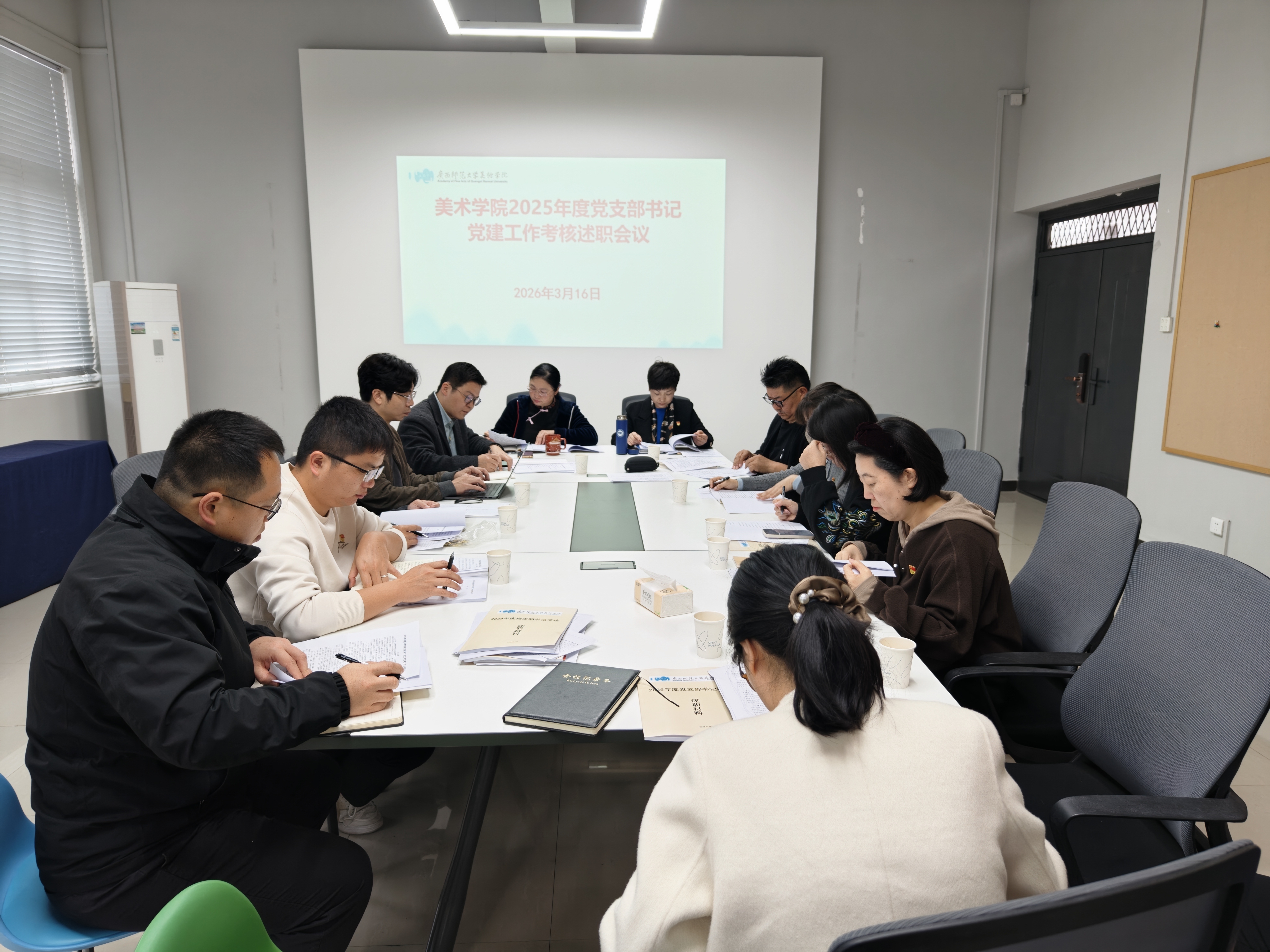 为深入贯彻落实新时代党的建设总要求,进一步提升基层党建工作质量,3月16日上午,美术学院党委在雁山校区纯道楼3-A208会议室召开2025年度党支部书记抓党建工作述职评议会。学院党政领导班子成员、党委委员、组织员及各党支部书记参加会议。会议由学院党委主要负责人主持。